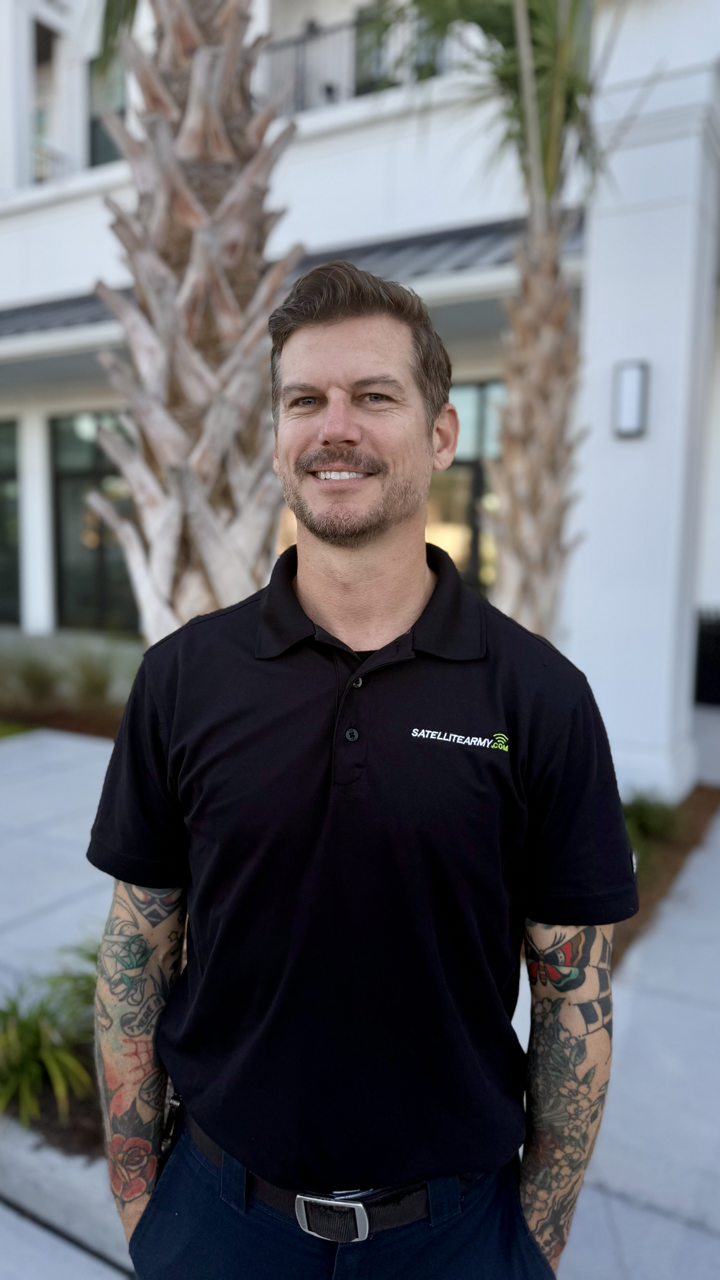 Adam founded Satellite Army, Inc. in San Diego in 2003, combining his Bachelor of Science in Business Administration with a passion for technology solutions. He relocated the company to Carolina Beach in 2005 to be closer to family, and after operating both California and North Carolina locations for several years, sold the California office in 2008 to focus exclusively on growing the business across Southeastern North Carolina. Under Adam's leadership, Satellite Army has built a reputation for professional, reliable service backed by both NC Electrical Unlimited and NC Security Systems licenses. When he's not leading the company, Adam enjoys surfing, snowboarding, and coaching his three kids' sports teams. He and his wife love traveling to tournaments and spending quality time with friends and family at home.